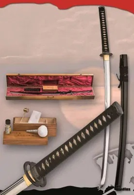 Slidan till svärdet är av trä som på originalen från Japan. Det är mycket vackert och i en svart träfärg. Svärdet och slidan är insvept i ett svart tyg fodral som används när katana svärdet transporteras .